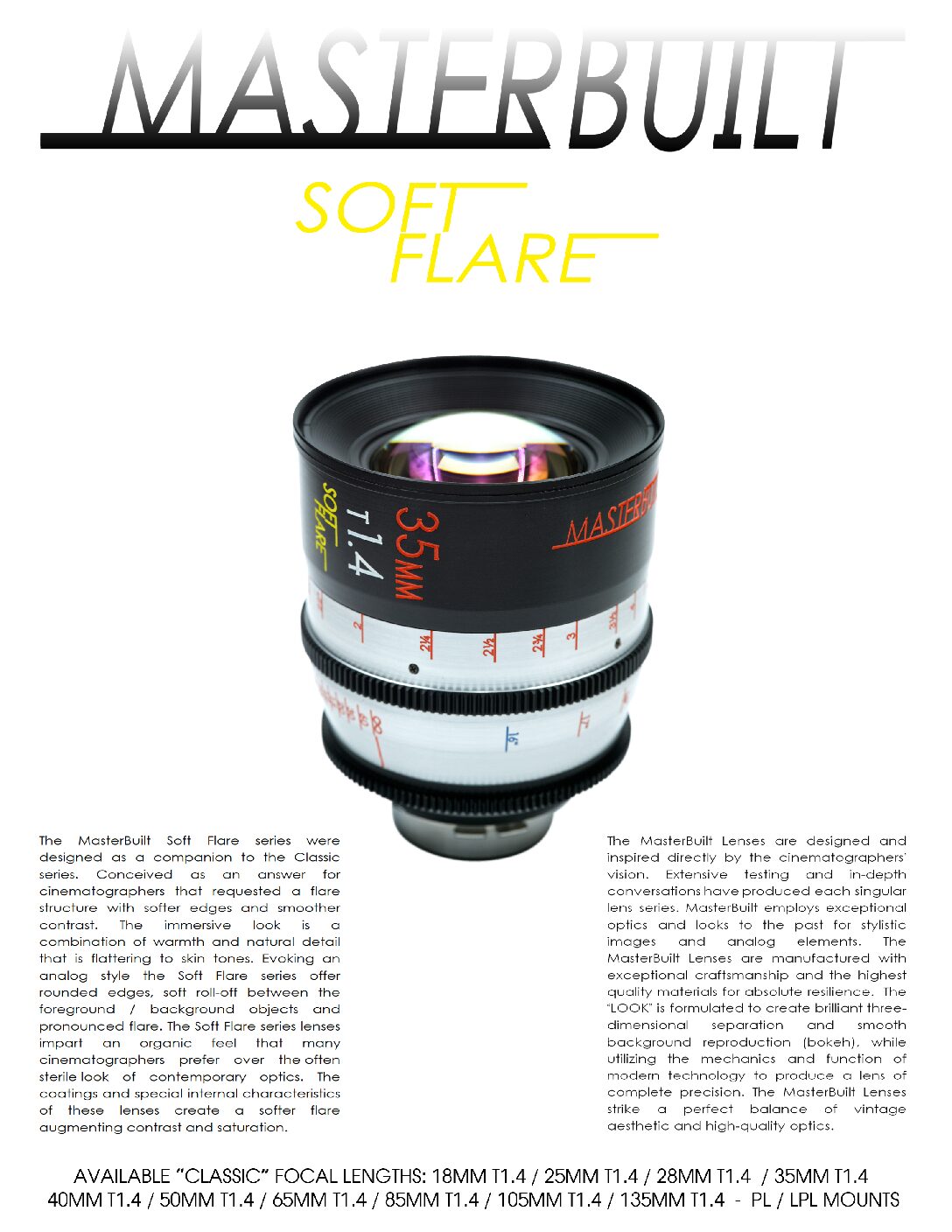 Preowned Masterbuilt Soft Flare Set with Feetscale for Sale on behalf of our client . All primes have a starting aperture of T1.4 and are equipped with PL-Mounts.