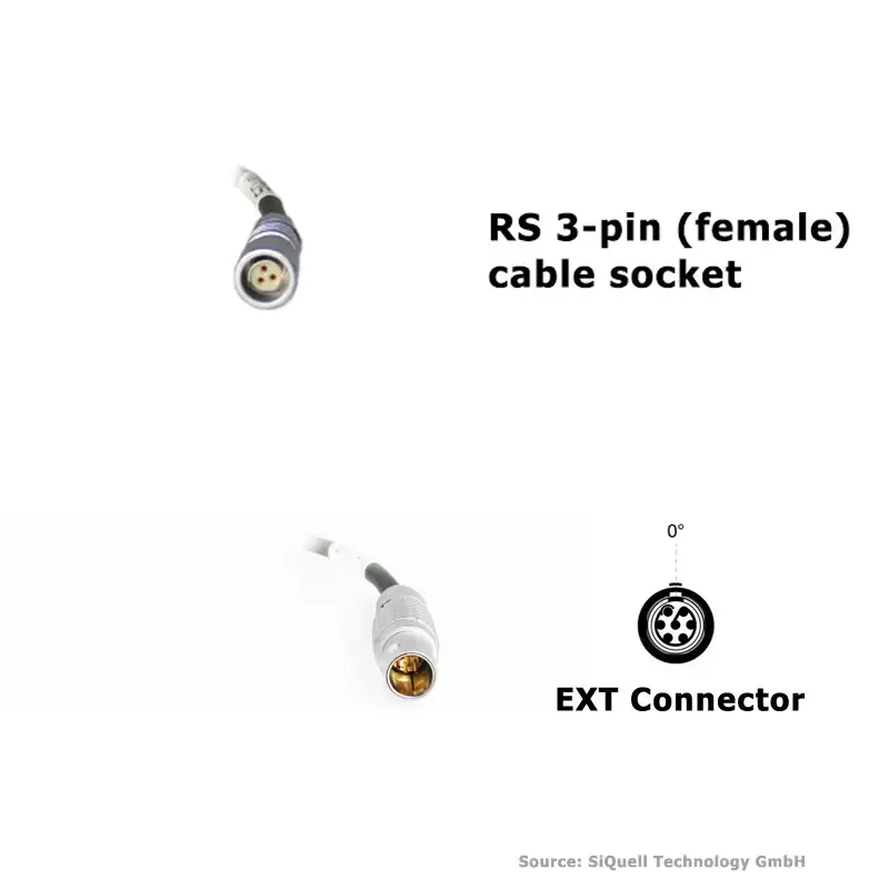 Short adapter cable that connects to the EXT connector of the ALEXA Mini and ALEXA Mini LF and provides a 3-pin RS connector.