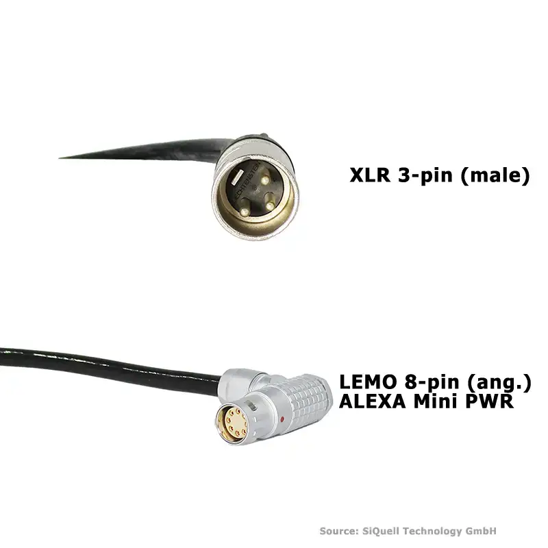 SiQuell Power cableXLR -3pin to ALEXA Mini, ALEXA 35 and AMIRA with angled connector is available in these standard lenghts: