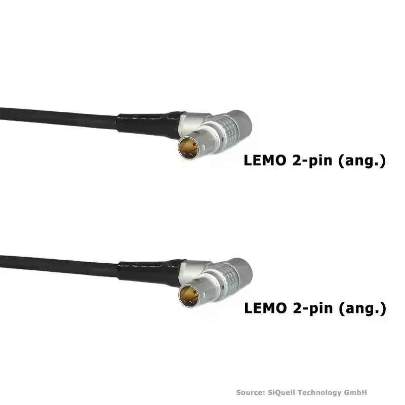 Lemo 2-pin (ang.) to Lemo 2-pin (ang.) cables are available in theses standard lengths: